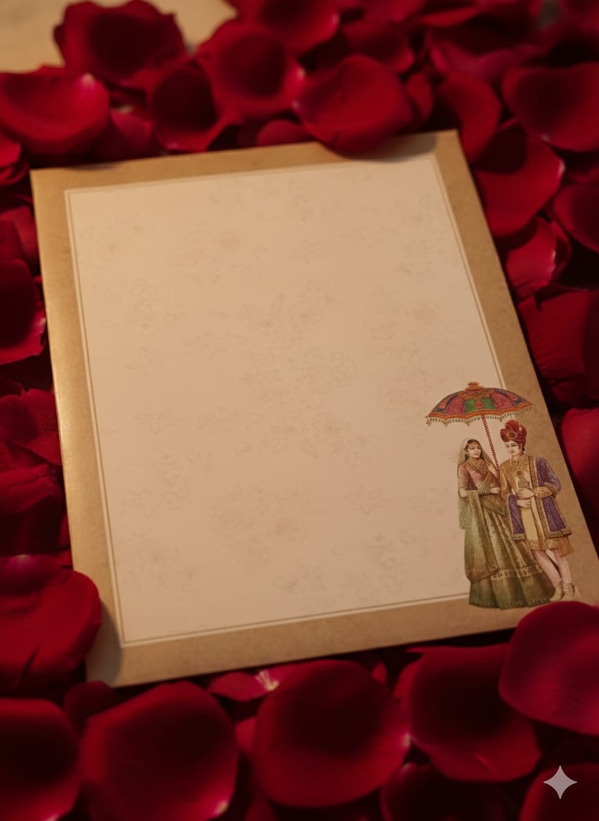 A lavish card featuring deep maroon velvet and intricate gold foil detailing, embodying timeless Indian royalty and elegance.
